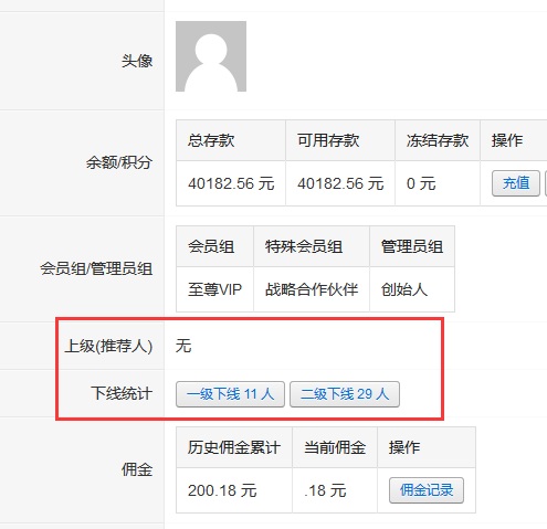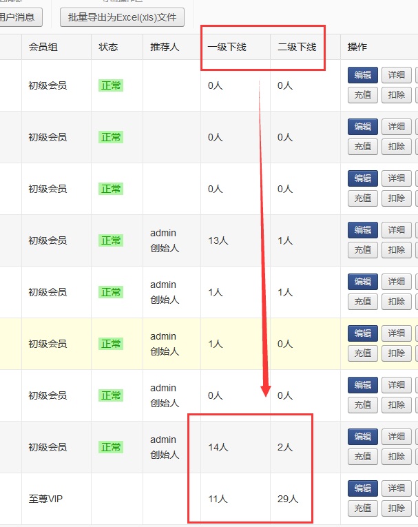 會(huì)員前臺(tái)pc端分銷下線列表和統(tǒng)計(jì):